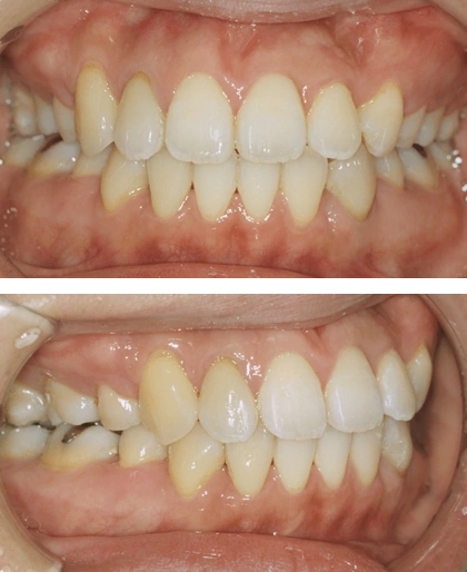 上下顎4本の小臼歯を抜歯して、マルチブラケット装置を使用して治療を行った症例。