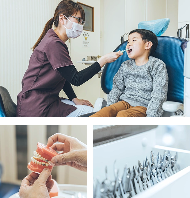 主に、顎の発育や前歯・奥歯の萌え方をコントロールすることにより、きれいな歯並びや咬み合わせのための土台作りをします。